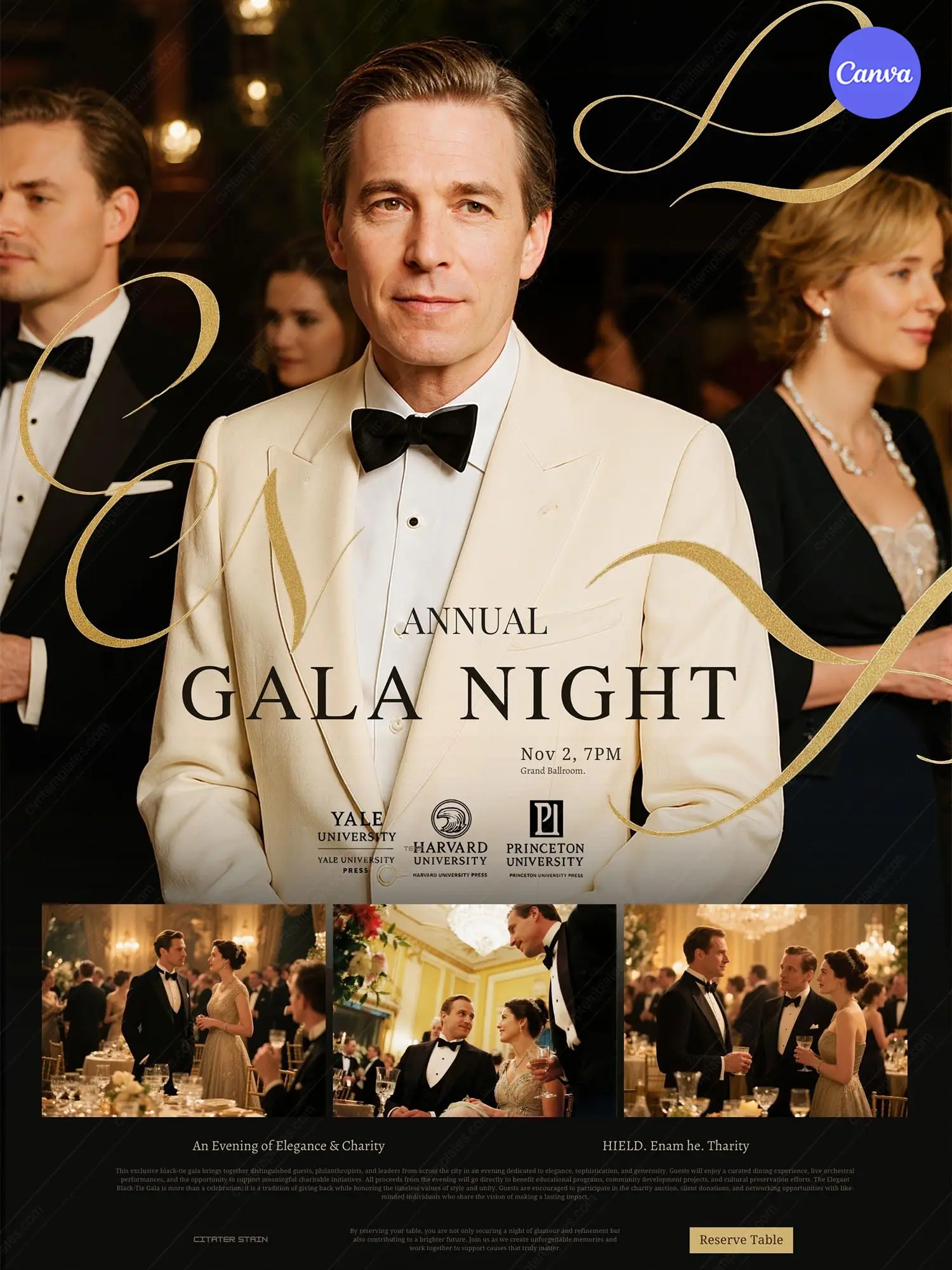 Black Tie Gala Poster Template – Formal Event Canva Design