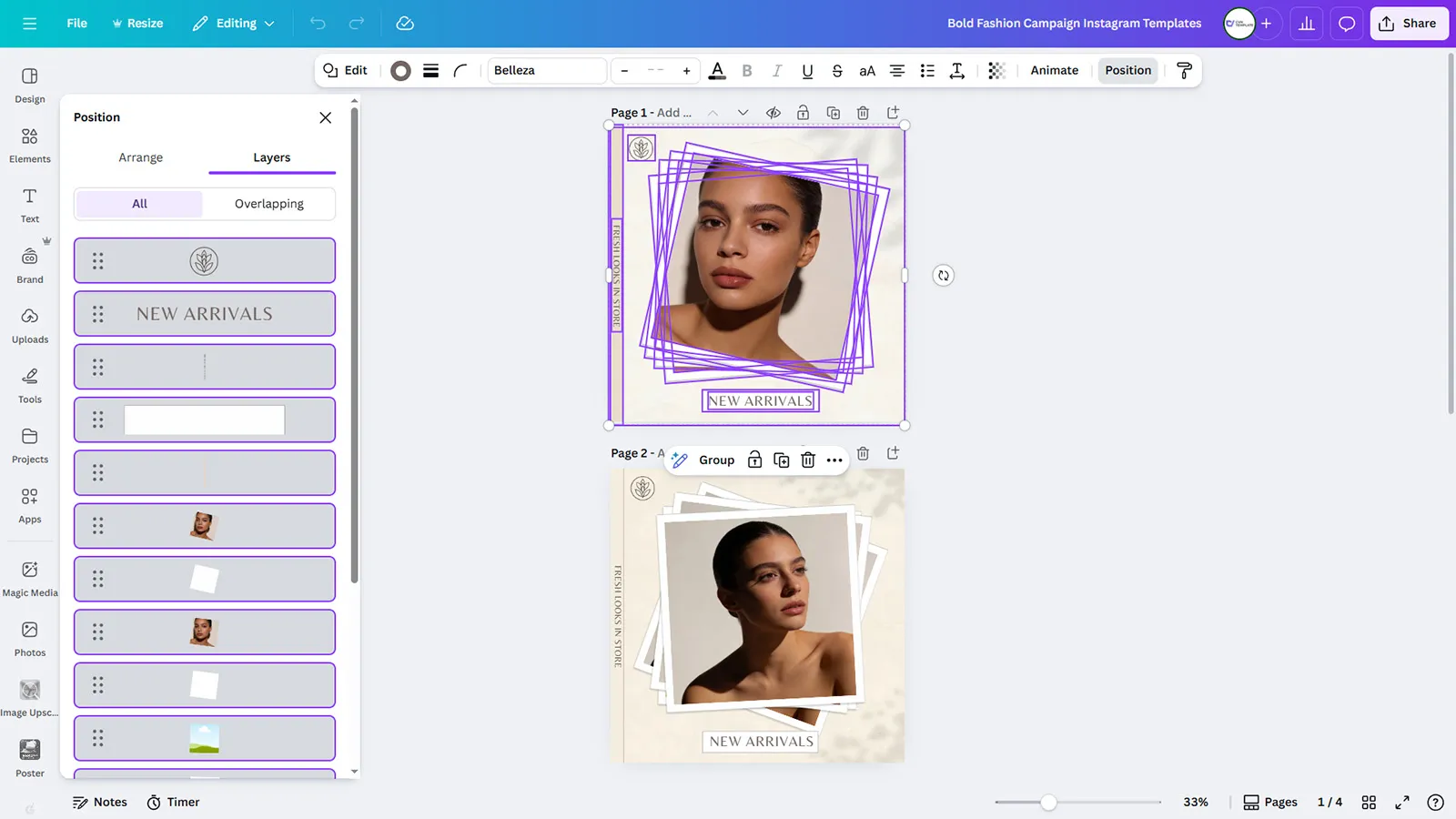 Launch impactful fashion campaigns with this dynamic set of 4 Instagram post templates designed to maximize visibility and brand awareness. These Canva templates feature bold design elements, eye-catching color blocking, and strategic layout compositions that stop scrollers mid-feed and demand attention. Each template is engineered for specific campaign goals: trend announcements, flash sale promotions, influencer collaboration showcases, and new collection launches. The vibrant design approach incorporates oversized typography, dramatic color contrasts, and modern geometric patterns that resonate with Gen Z and millennial fashion audiences.