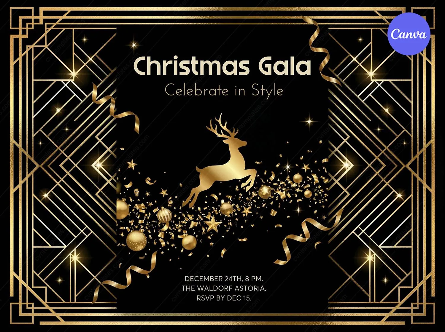 Christmas Gala Invitation Template – Free Canva Design for Elegant Holiday Parties