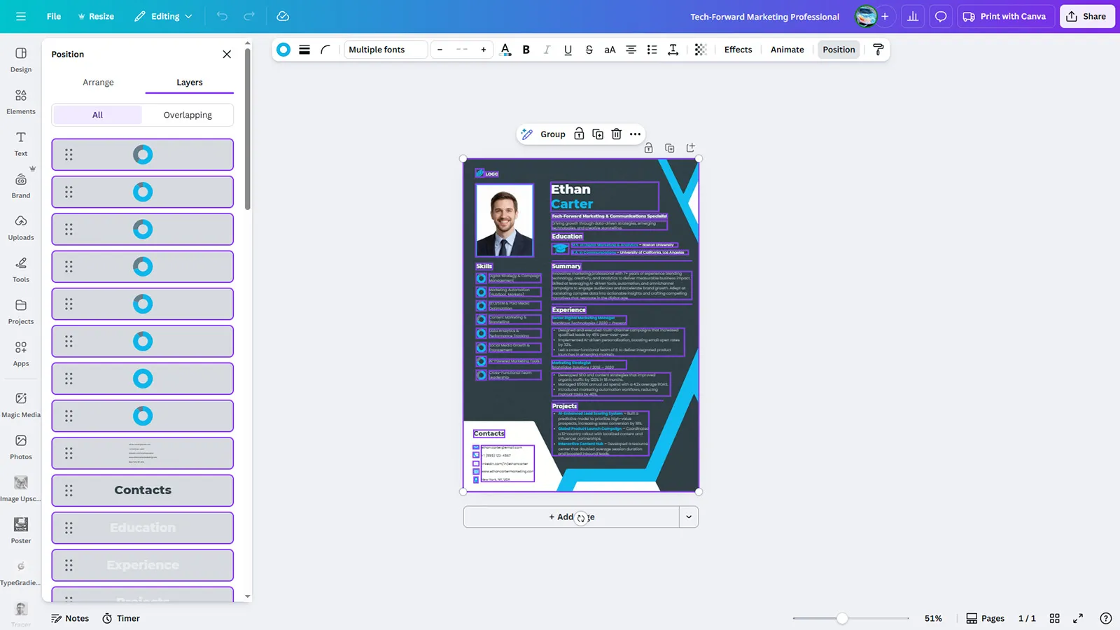 • The template will be automatically copied to your Canva account for editing