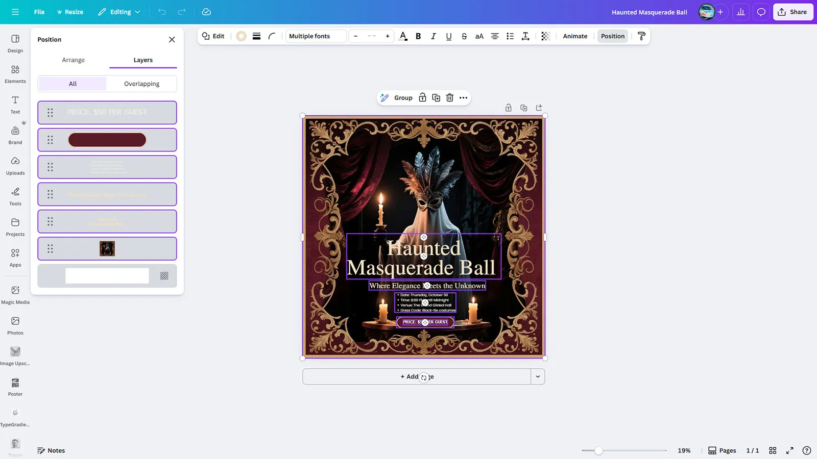 Create an unforgettable Halloween event promotion with this free Halloween masquerade ball Instagram template featuring luxurious baroque styling. The design showcases an ornate golden frame against rich burgundy velvet curtains, with a mysterious ghostly figure wearing an elegant feathered masquerade mask that creates an enchanting atmosphere. This free Halloween masquerade ball Instagram template includes candlelight effects that add to the atmospheric ambiance. Event details are elegantly displayed including date, time, venue, dress code, and pricing. The gothic typography perfectly captures the theme Where Elegance Meets the Unknown. Ideal for Halloween parties, masquerade events, upscale seasonal celebrations, and themed costume balls.
