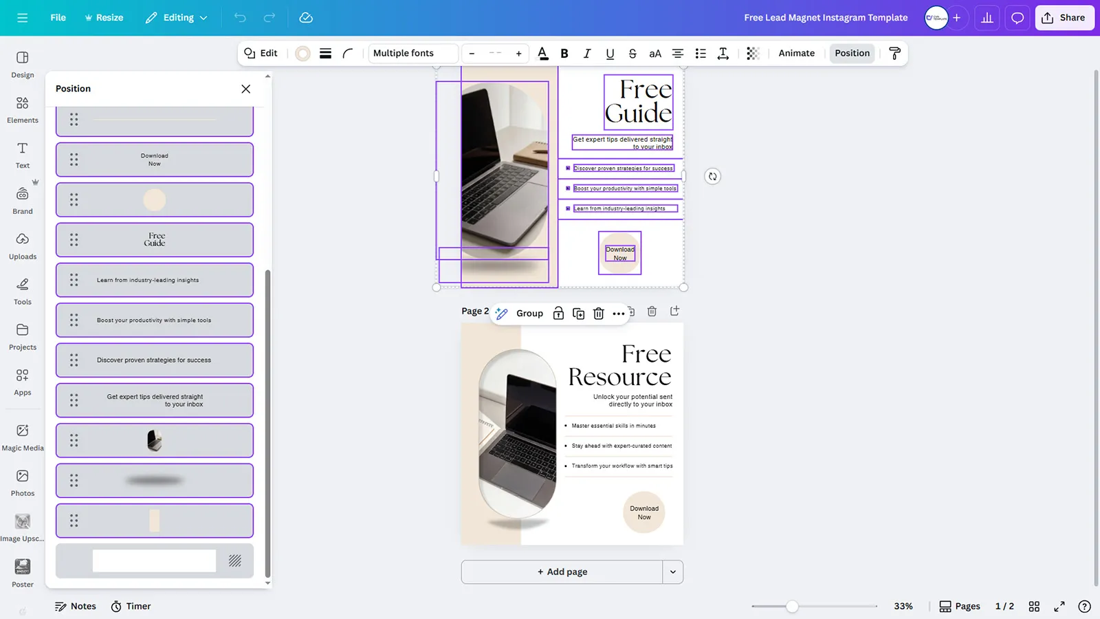 Convert Instagram followers into email subscribers with these professional lead magnet templates designed for coaches, consultants, and digital entrepreneurs. This dual-template set features two complementary designs in a sophisticated neutral color palette with curved geometric elements. Both templates highlight the value of your free offerings while maintaining an elegant, minimalist aesthetic.