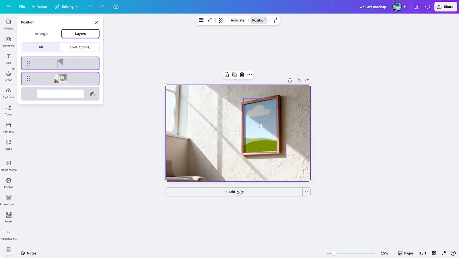 Looking for a free wall art mockup to present your artwork beautifully? This warm free wall art mockup template for Canva features a wooden frame hanging on a textured white plaster wall. The gorgeous natural window light casts soft shadows, creating a cozy and inviting atmosphere that brings your art to life.