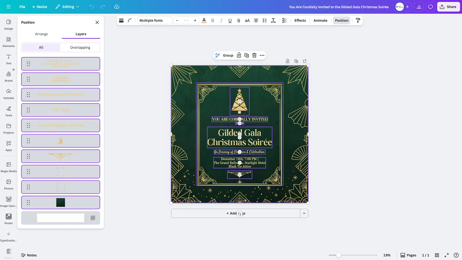 Customize this template effortlessly in Canva’s intuitive editor. Modify text, adjust colors, and personalize every element to match your event’s unique vision. The fully editable layers ensure your invitation looks professionally designed while reflecting your personal style and the exclusive nature of your Christmas soirée.