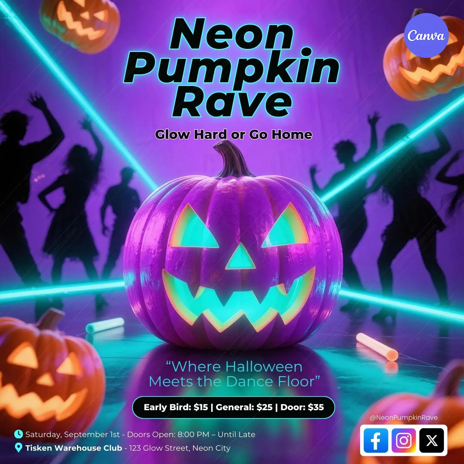 Halloween Rave Instagram Template – Neon Pumpkin Dance Party Design
