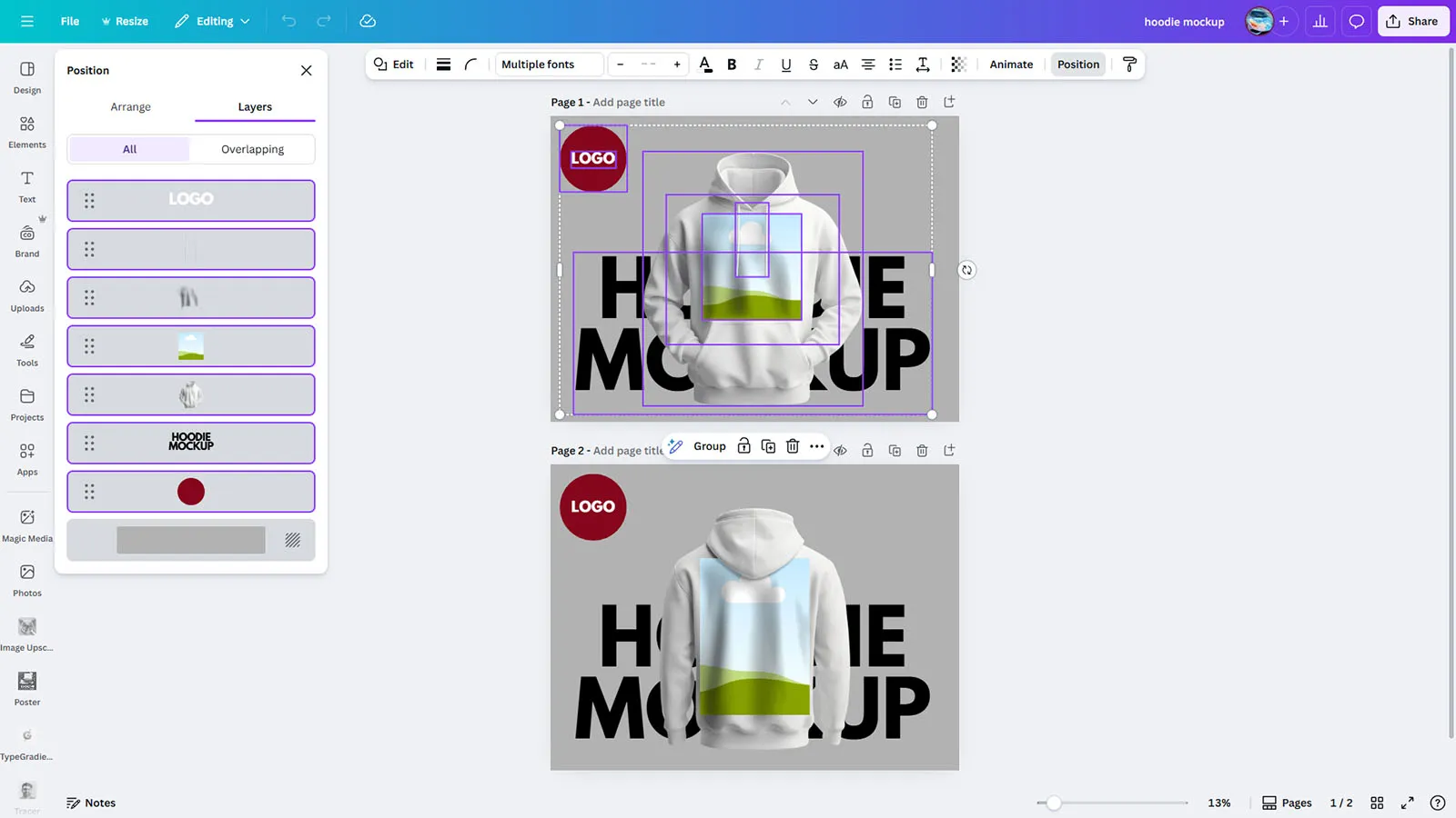 This streetwear mockup includes customizable logo placeholders for complete brand integration. Perfect for streetwear brands, print-on-demand sellers, and apparel designers who want to showcase their hoodie graphics with maximum impact and professionalism.