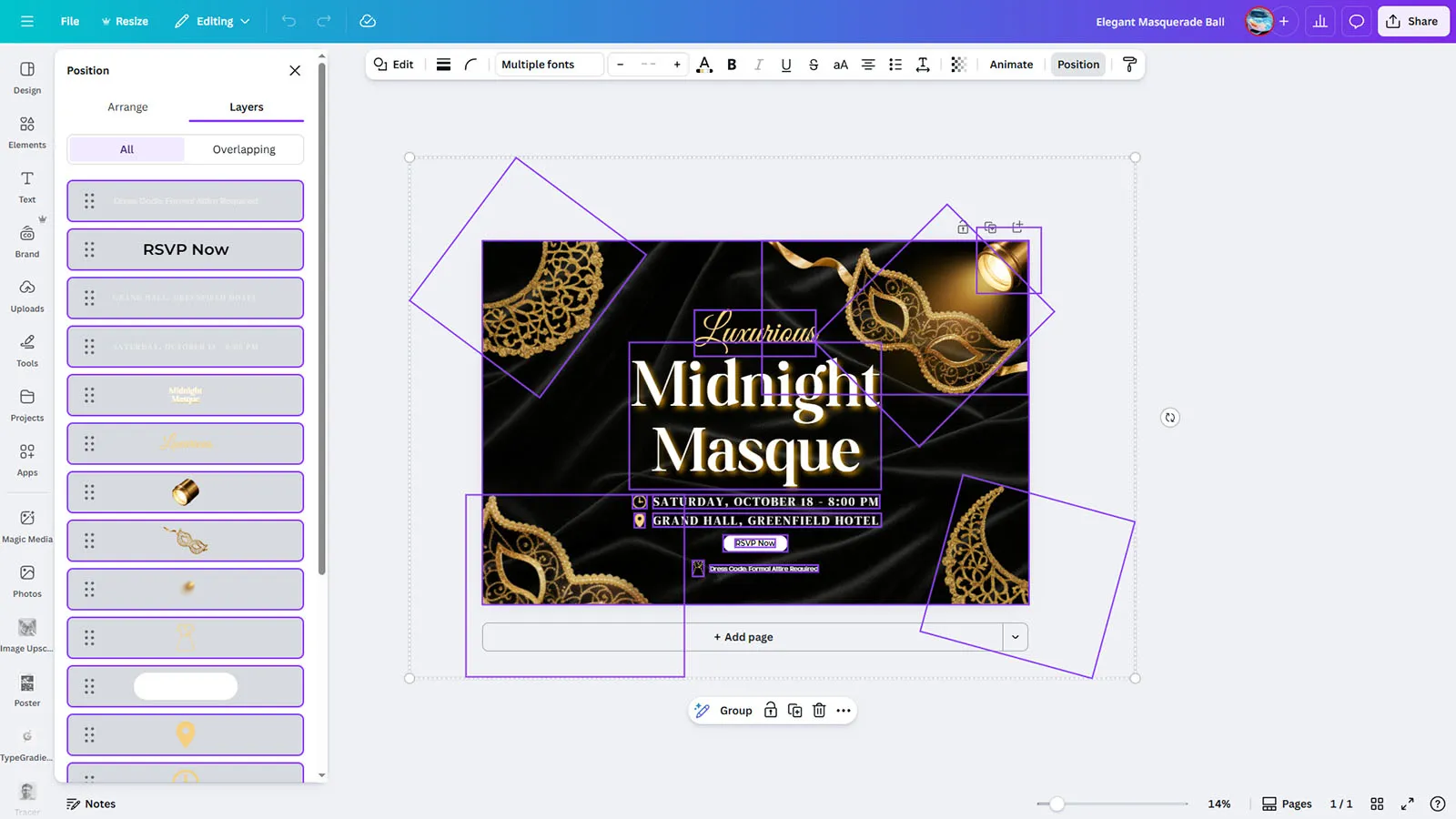 Masquerade Ball Flyer Template | Elegant Gold Venetian Party Design for Canva