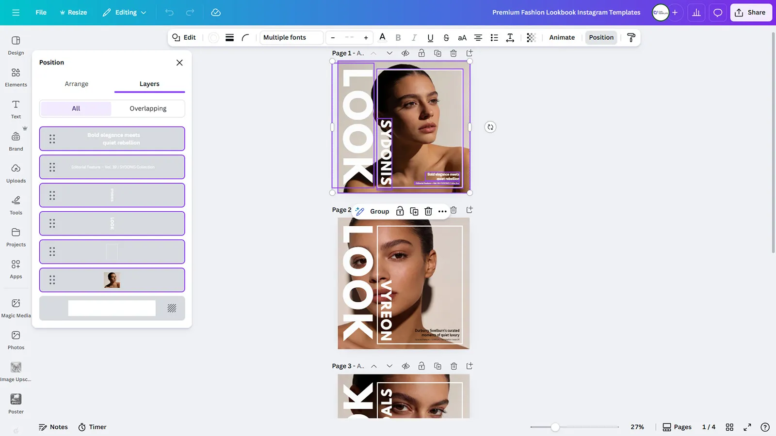 Unlock professional-level Instagram content with this comprehensive set of 4 premium fashion post templates designed for brands serious about their visual presence. This Canva template bundle offers a complete solution for creating stunning lookbook-style posts, product showcases, and editorial fashion content that commands attention. Each template in this collection features unique layouts optimized for different marketing purposes: hero product announcements, multi-image grids, testimonial features, and promotional campaigns.