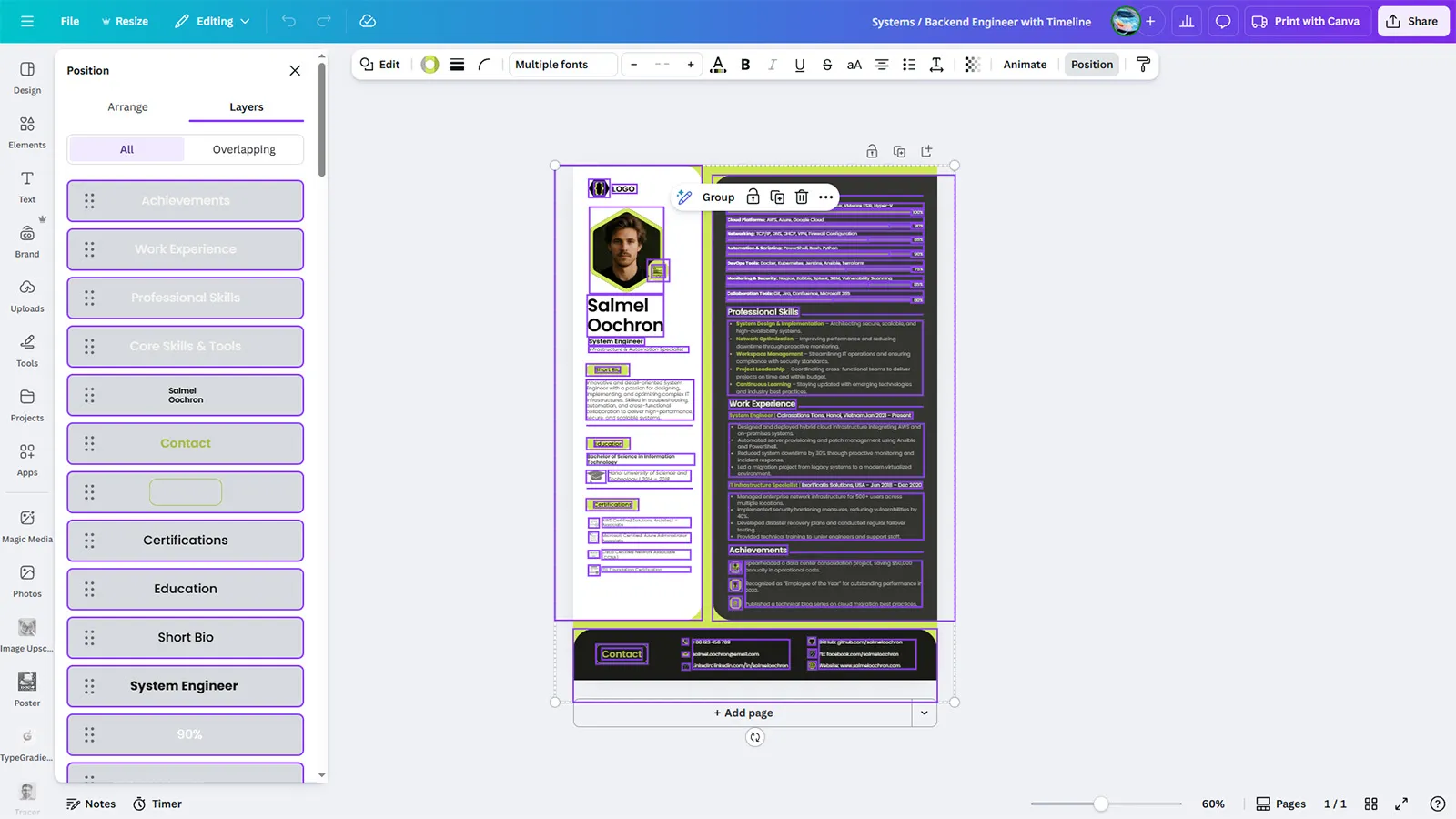 System Engineer Resume Template | Infrastructure Specialist CV for Canva